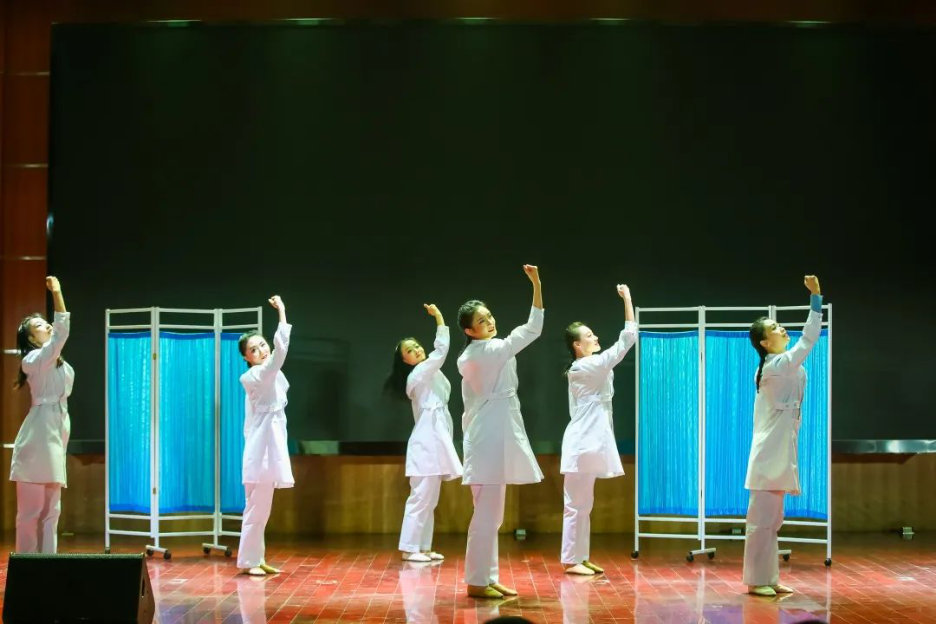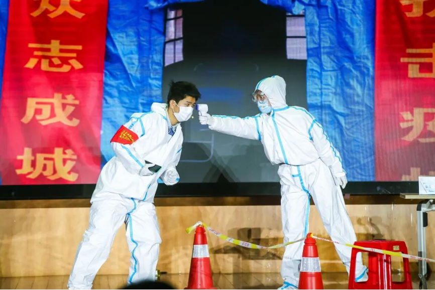 舞蹈《1037在行动》由龚雪莹、曾希卓、朱心韵三位老师,以及华中科技大学舞蹈团共同表演。该舞蹈不仅呈现了我们度过那段抗疫艰难时刻应具备的力量和信念,更是向每一位曾经投入一线战斗的华中大英雄致敬。