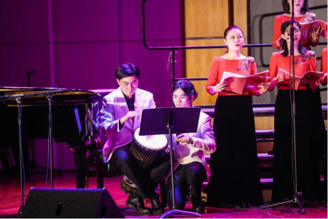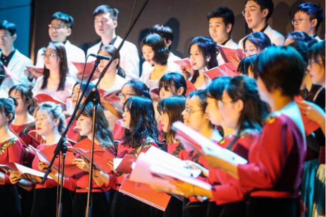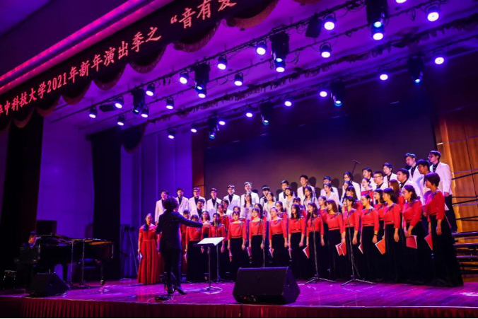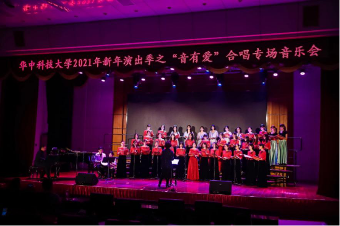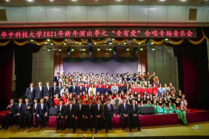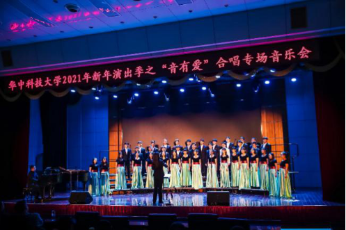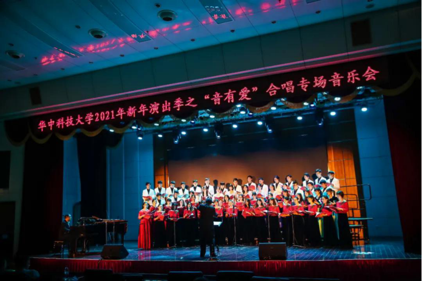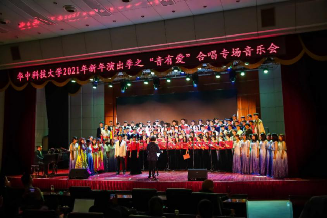 华中科技大学高水平艺术团合唱团,各8个试点院系0基础学生组建的3个混声团以及少数民族石榴籽合唱团一同用音乐向师生传递沉沉爱意与坚定信念,在歌声中,铭刻旧岁,展望新年!