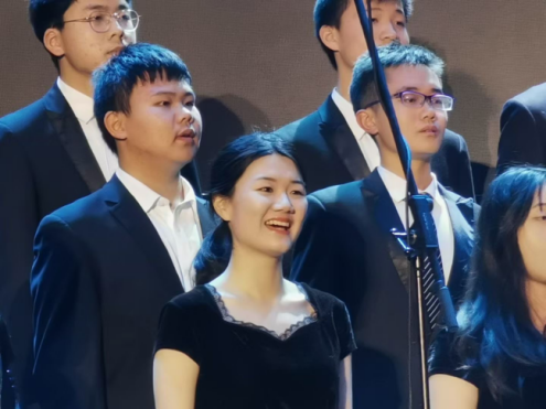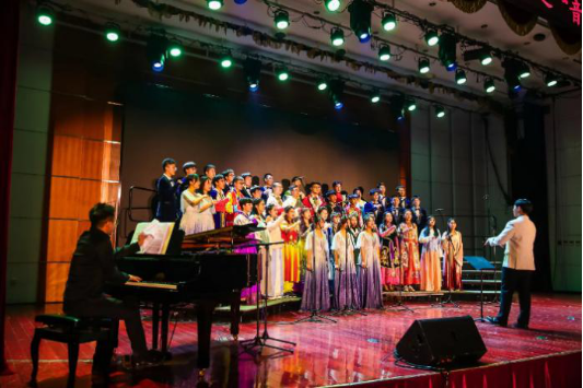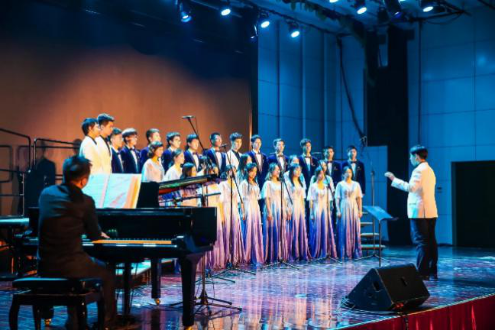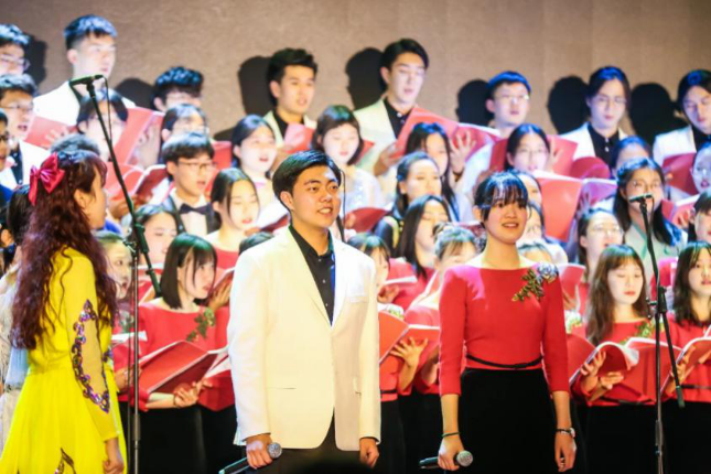 在学生指挥——于君泽的带领下,光电学院&人文学院&管理学院混声合唱团唱响一曲《Fly Song》;石榴籽合唱团为我们带来著名音乐剧《音乐之声》的插曲——《Do Re Mi》。此曲内容活泼,充满童趣,是为了让孩子们记住唱歌所用的七个音名而作,是世界上最著名的音乐启蒙歌曲之一。