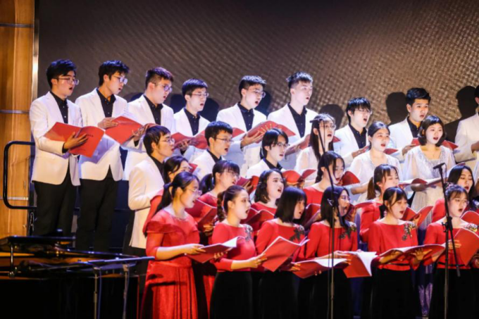 本次新年音乐会以高水平合唱团演唱为别演唱了16首不同时期不同风格的合唱作品。主要分为四个板块:中外名曲、院系妙音、女生合唱以及抗疫之声。