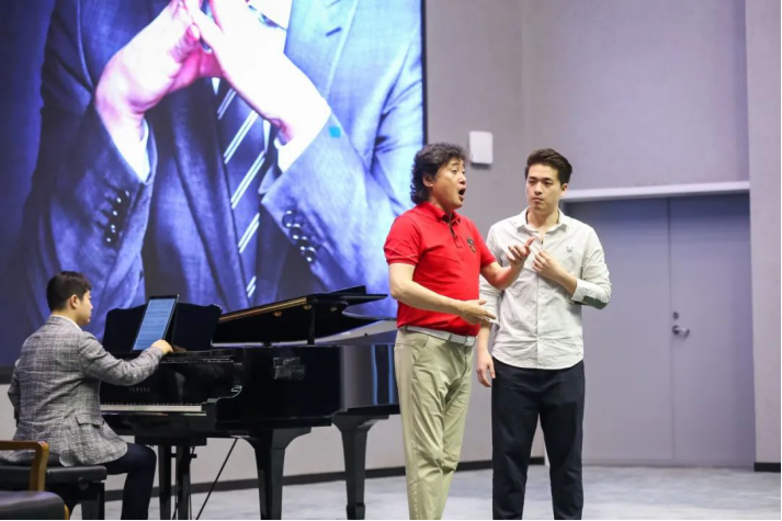 戴老师的学生孙田飞雪,一位抒情男高音带来了一首著名歌剧选段《绿树成荫》,戴老师在现场对他进行了技术上的指导。